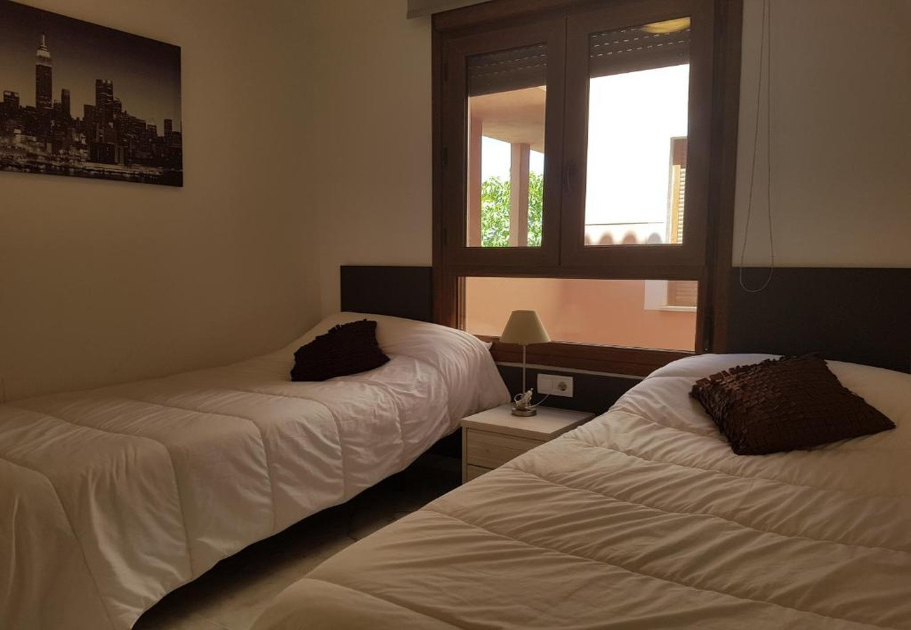 Dispone de mobiliario jardín, 15 m² de terraza, lavadora, plancha, acceso internet (wifi), calefacción bomba de calor, aire acondicionado en todo el alojamiento, piscina comunitaria+infantil, 1 Televisor.