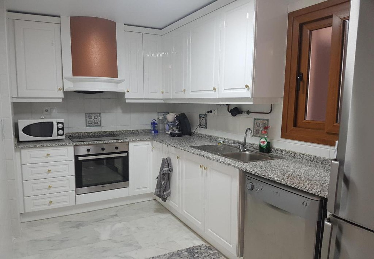 La cocina americana, de vitrocerámica, está equipada con nevera, microondas, horno, congelador, lavavajillas, vajilla/cubertería, utensilios/cocina y cafetera.