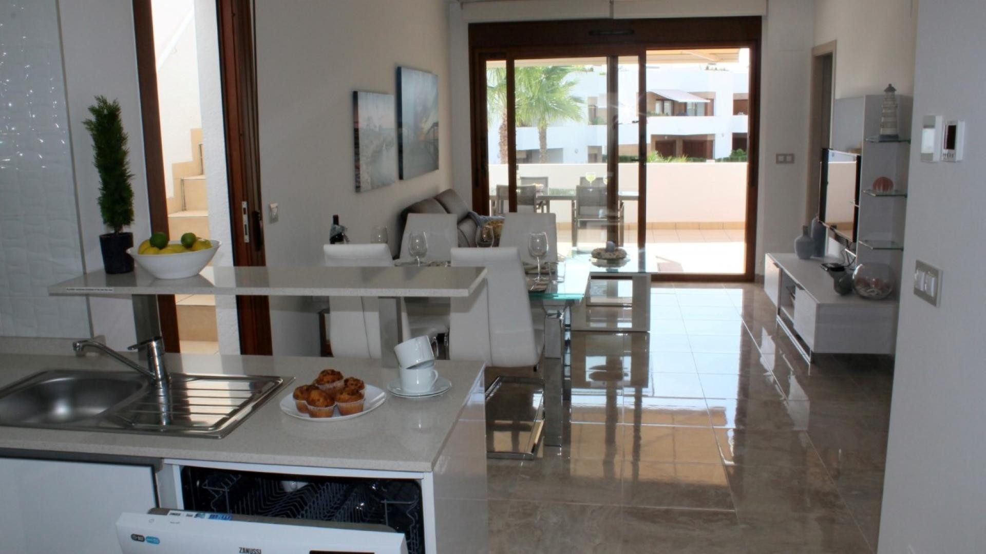 Its location is unbeatable: just 100 metres from supermarkets, restaurants and the La Zenia Boulevard shopping centre. La Zenia beach is just 900 metres away, and the Villamartin and Campoamor golf courses are 2 kilometres away.
