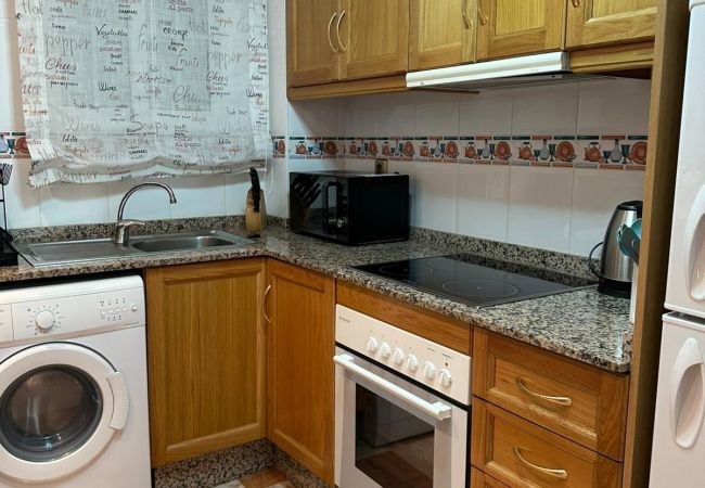 It has a garden, fenced plot, terrace, washing machine, internet access (wifi), balcony, children's area, alarm, air conditioning, communal swimming pool, outdoor parking in the same building, 1 Television.